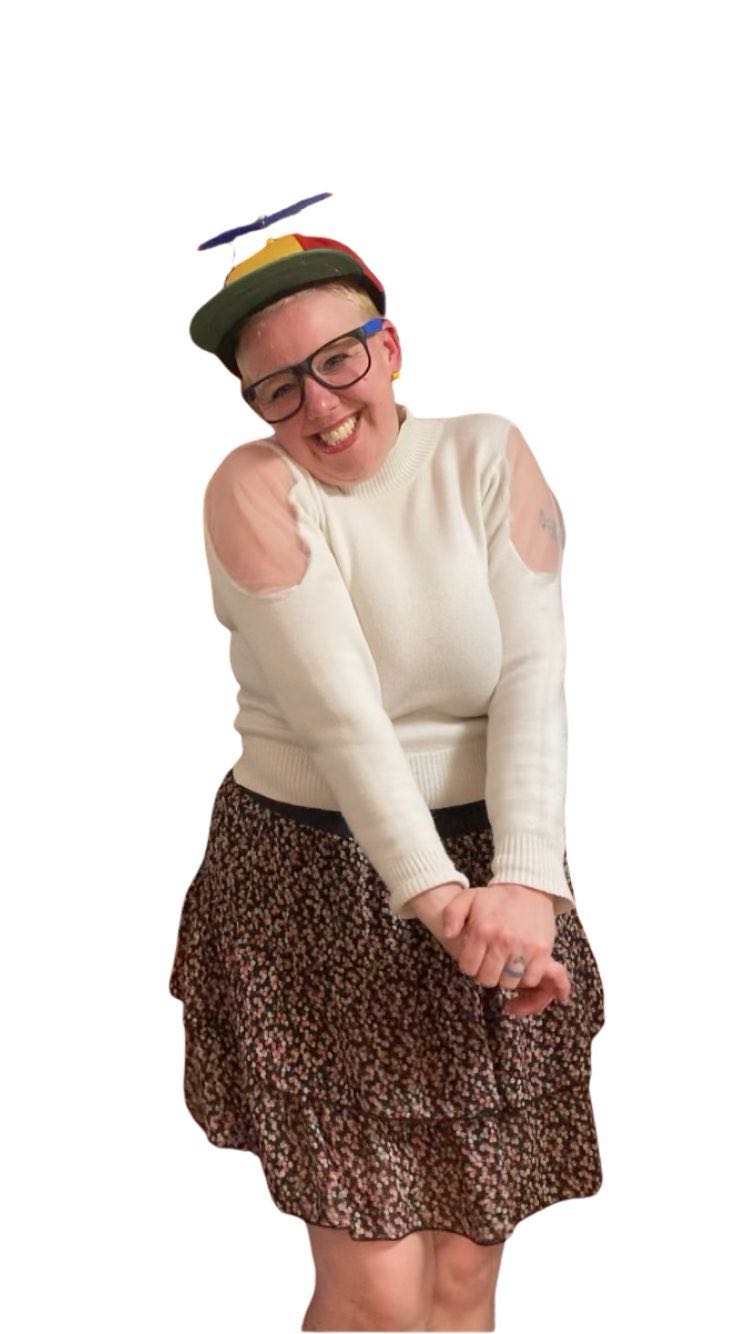 Our adorably awkward dweeb met the recipient long ago (while taking driver’s license photos at the DMV) and instantly fell in love. Since then, this cute Nerd has secretly stalked her prey, gathering all kinds of personal info. Dressed in her best party attire, she’s finally built up her nerve, on this special occasion, to reveal her true feelings in song. She presents her object of affection with awkward flirtations and propositions, a keepsake party hat and kazoo, and leads the group in a familiar song to commemorate the occasion. She finally reveals that it wasn’t just her own heart that brought her to there when she reads your personal message on the souvenir telegram card.